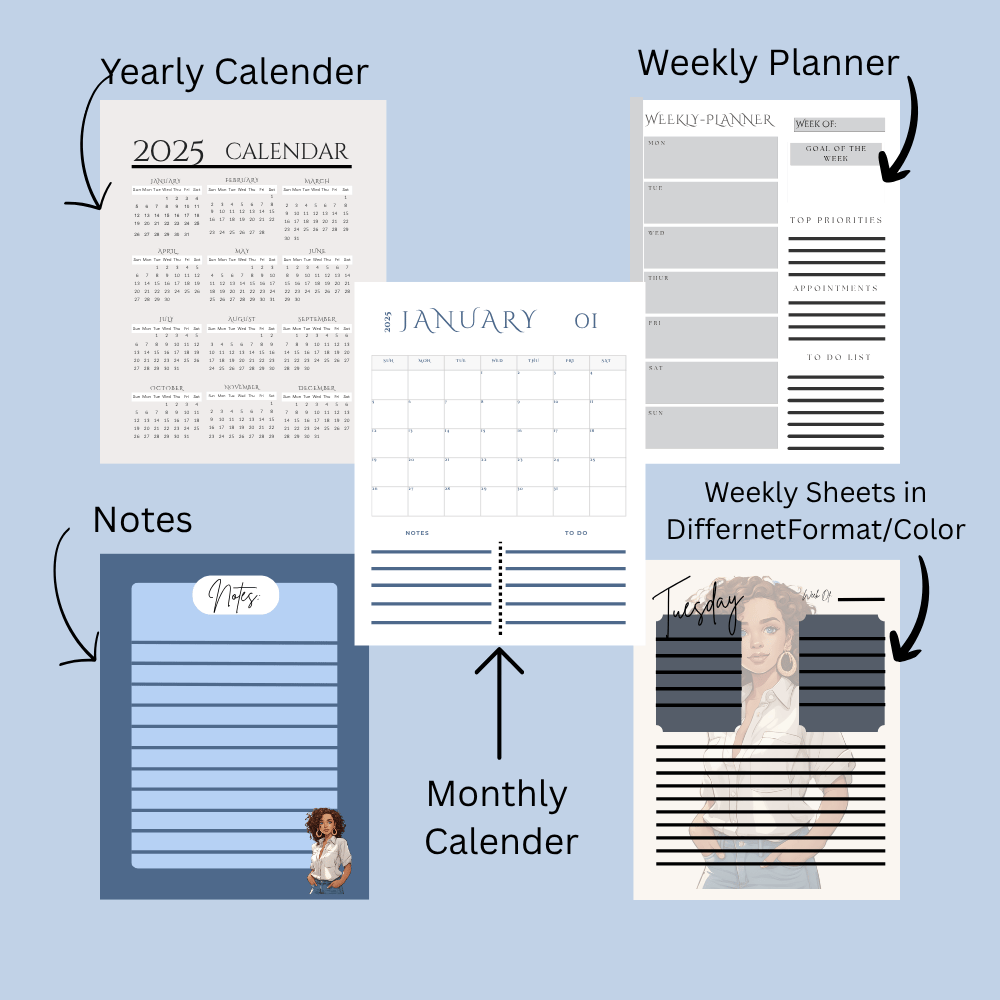 - Yearly, Monthly & Weekly Views Plan big-picture goals, track monthly progress, and break it all down week by week.