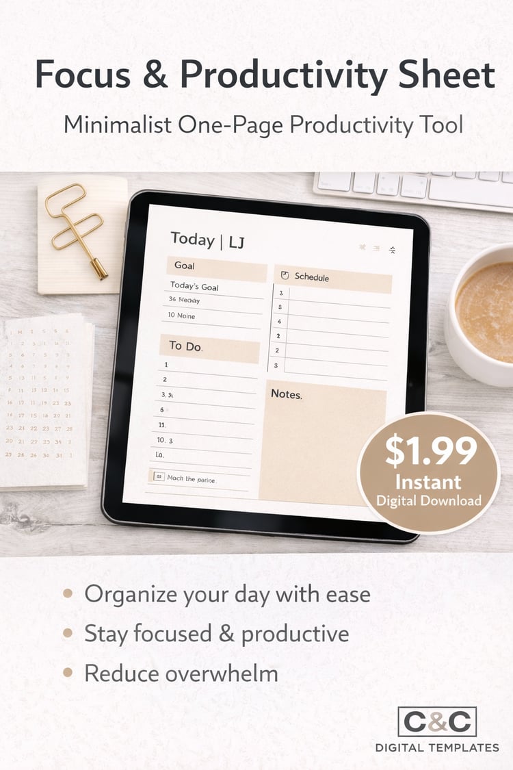 Digital Templates to Help You Stay Organized & Purpose-Driven menos tiempo