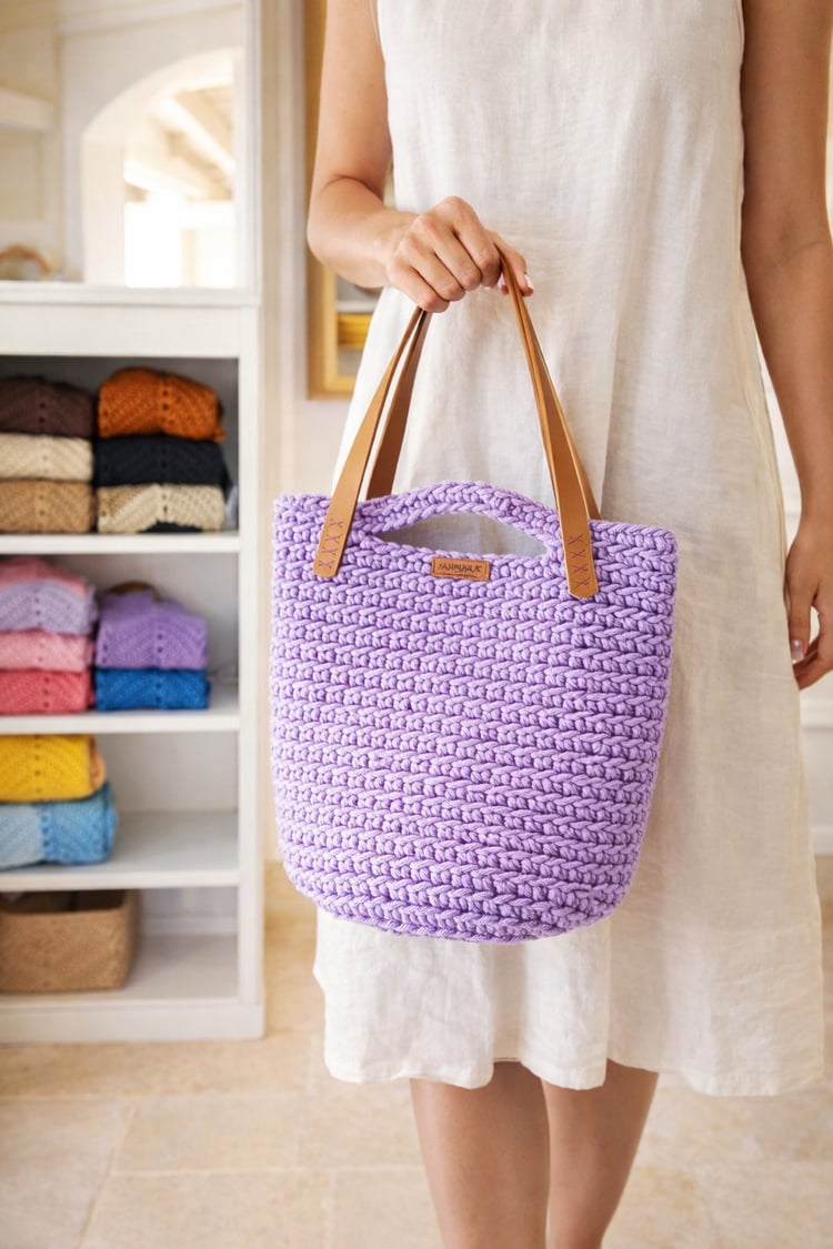 The Isla Rope Tote is a structured, everyday bag made with cotton rope. It is designed to be durable, elegant, and practical at the same time. The texture created by working in the back loop only gives it a unique, modern look while keeping the bag sturdy.