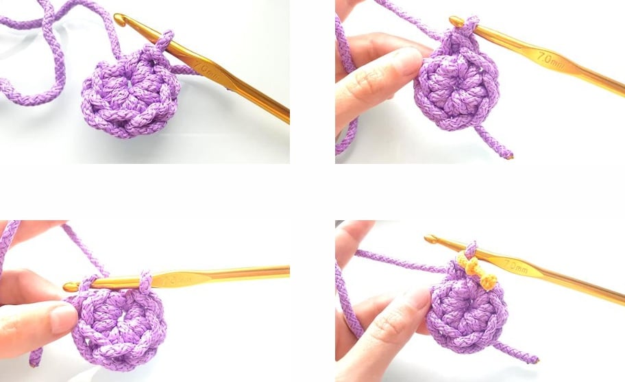 Rnd 2: 2 SC in each stitch around (14 SC).