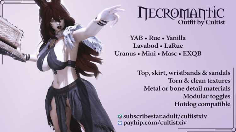 I make 3D models and textures! Expect clothing, accessories and adult content. Most of my creations are geared towards female characters.