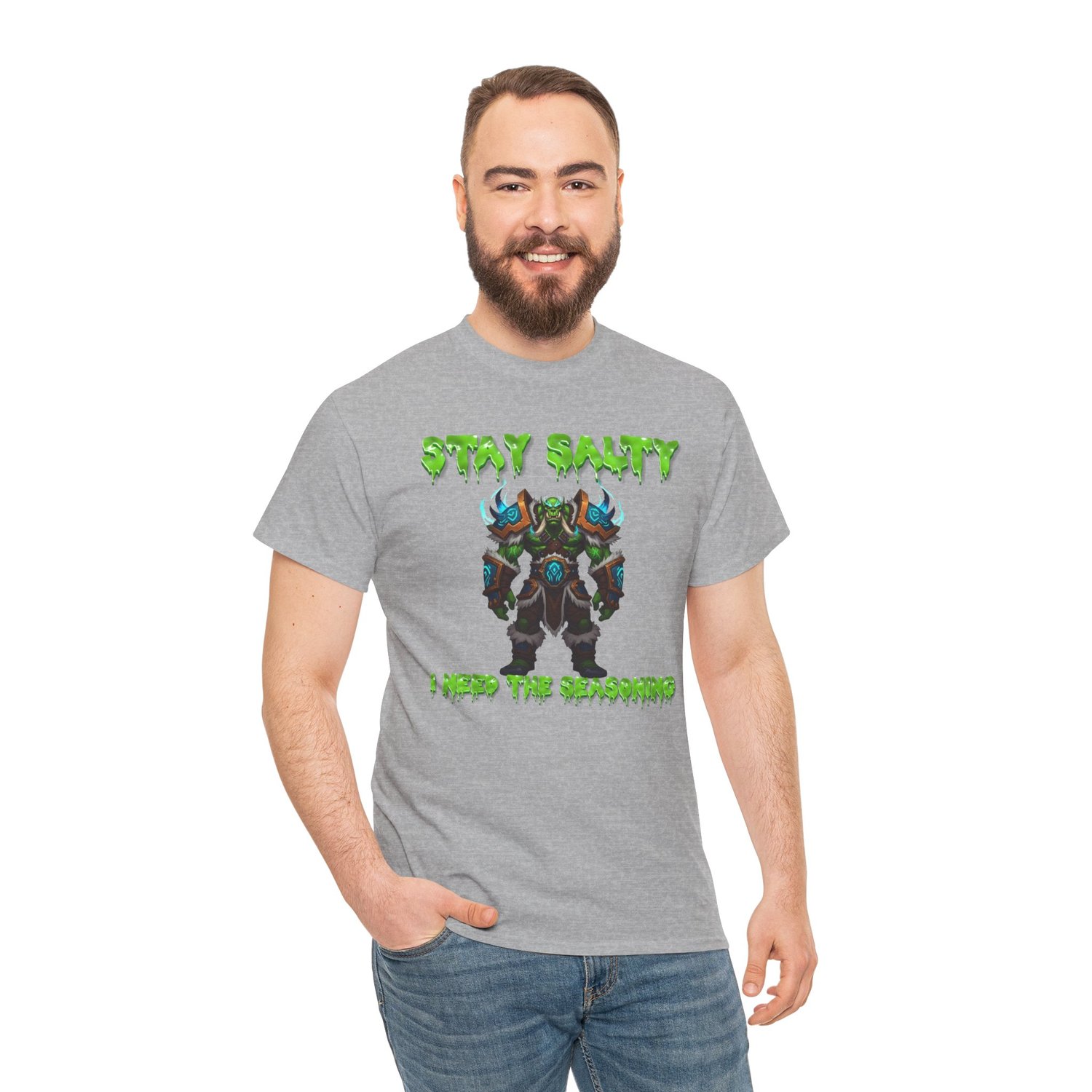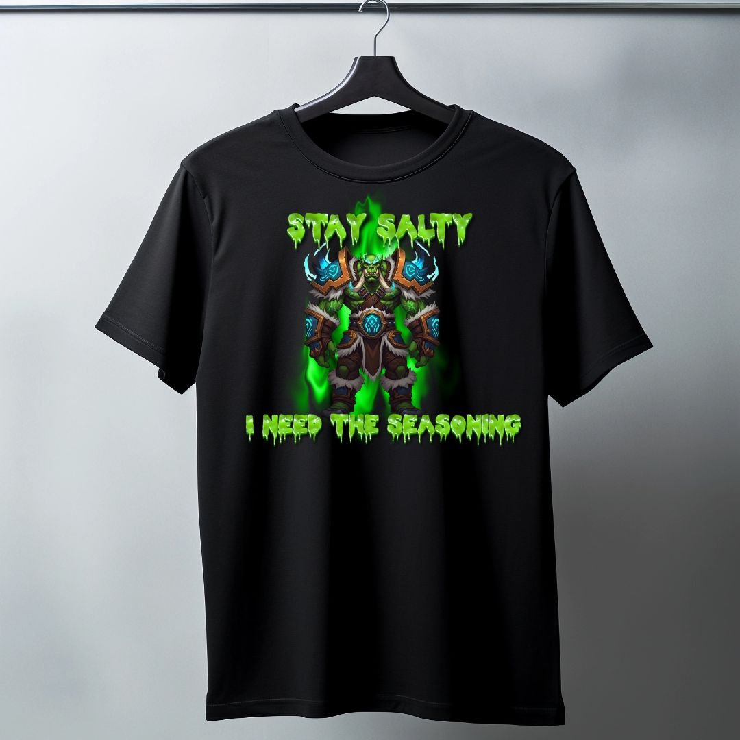 A bold “Salty Orc” tee for anyone who games hard and grumbles louder. Printed on a comfy unisex shirt in black, white, or grey, sizes Small–5XL. Perfect for raids, rants, and real‑life quests.