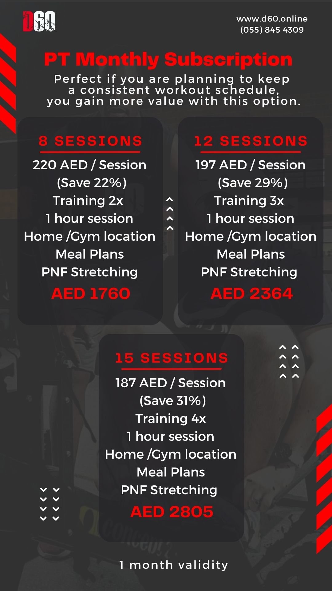 D60 is a high end Personal Training fitness subscription that focuses on helping you finally achieve your goals through daily training, nutrition protocols, daily follow up from coaches and by becoming part of a community that will support your journey! We strongly believe that the only way to get the results you want is through perfectly designed programs that guide you step by step and by being there with you every step of the way!