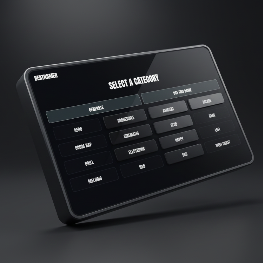 Plug it in, pick a vibe, generate a name, and keep creating.