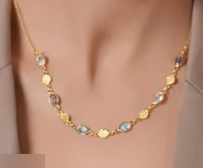 - Blouse → tiny bar necklace + simple chain