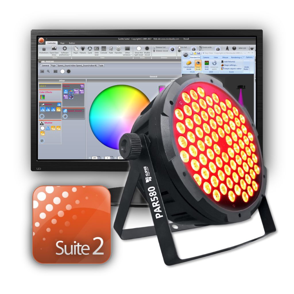Librería de Sunlite Suite 2 P/ PAR580 de Super Bright & Loud ( 3-7CH )