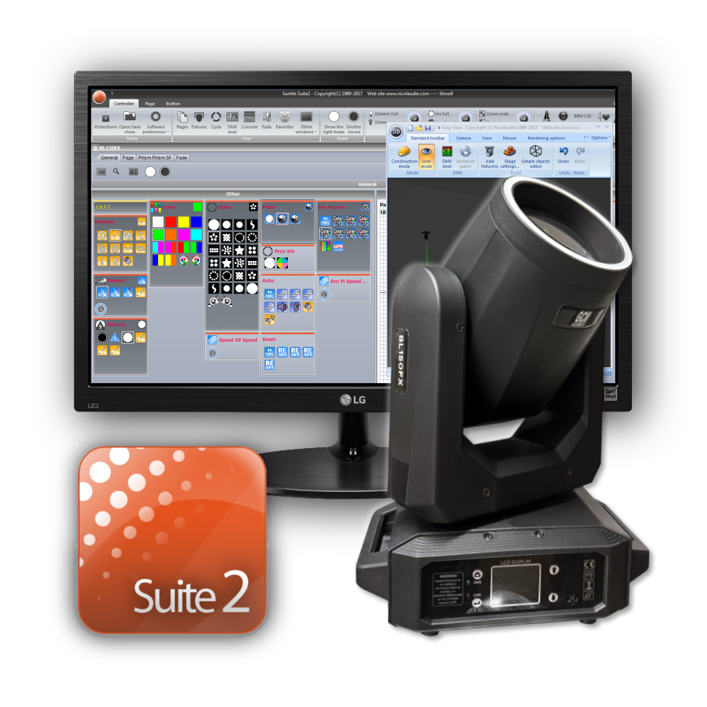 Librería de Sunlite Suite 2 P/ BL150FX de GCM ( 13-15CH 150w Beam con Aro )