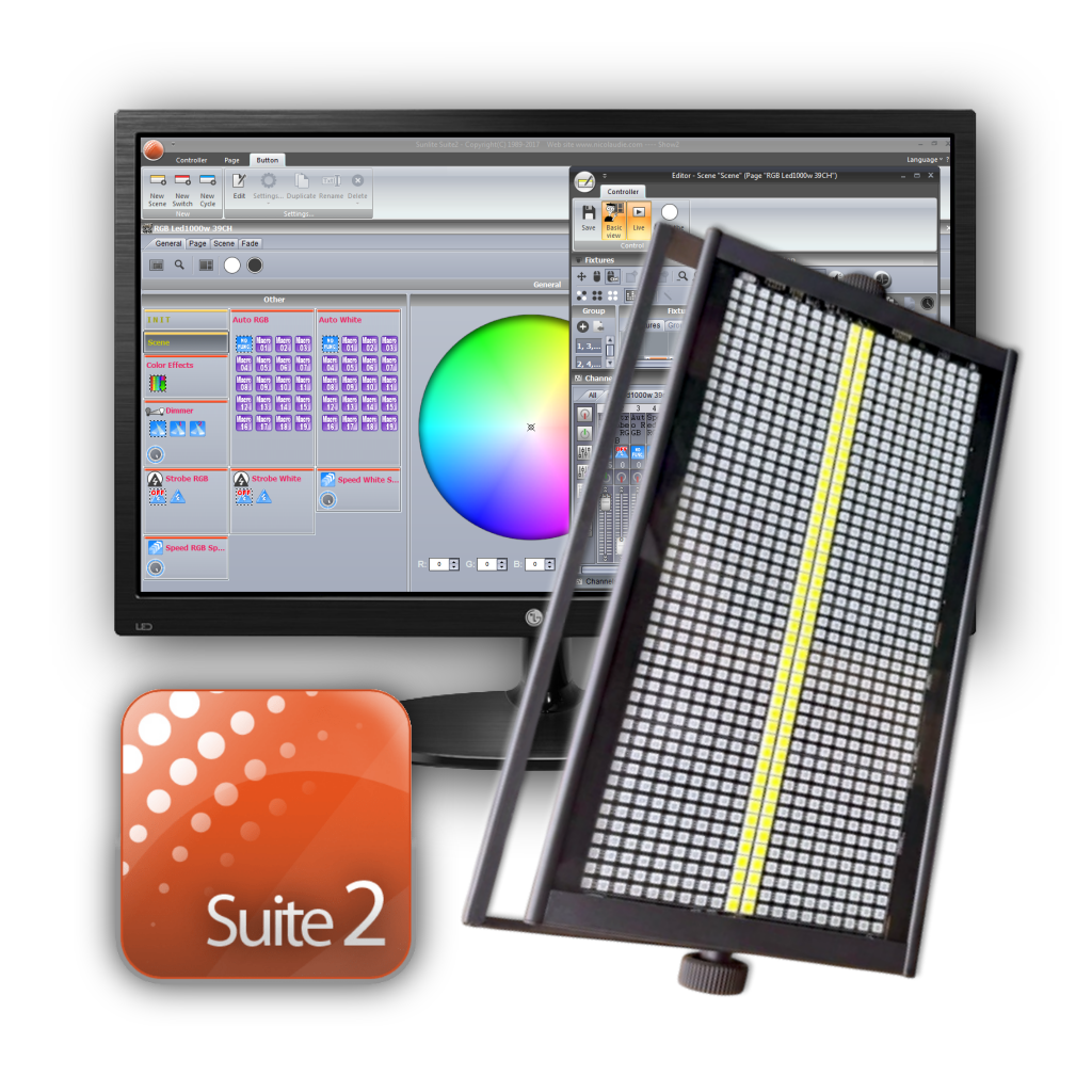 Librerías de Sunlite Suite 2 P/ RGB Led1000w Colouring Strobe V2 de Mekka Light ( 4-11-32-39CH )