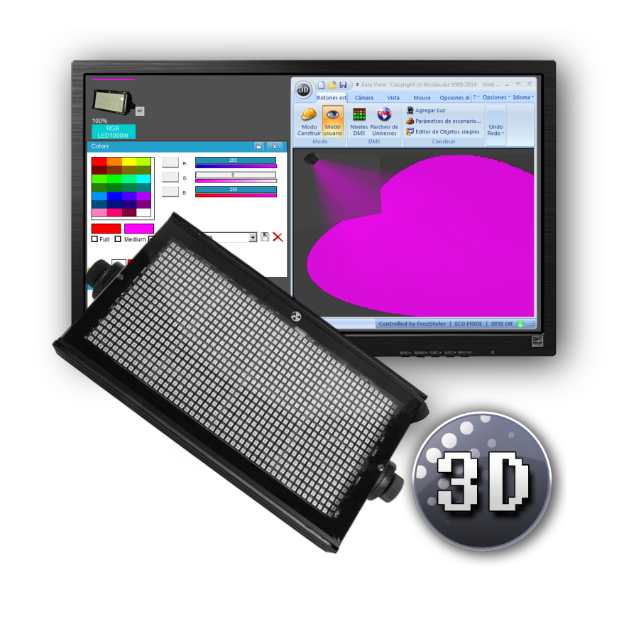 Librería de Magic 3D P/ RGB Led1000W Colouring Strobe V1 de Mekka Light ( 3-9-24CH )