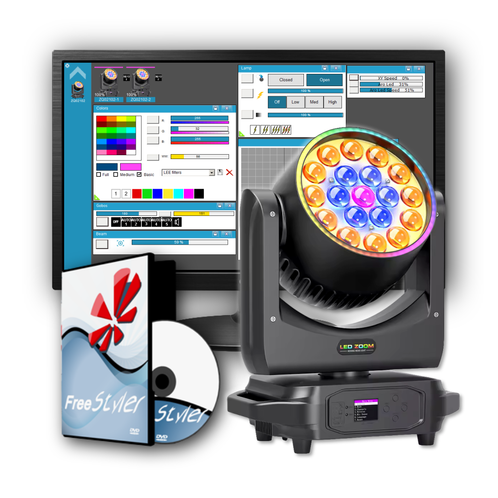 Fixture de Freestyler P/ ZQ02102 de Uking ( 17-25CH Zoom Wash 19x8w con Aro Led )