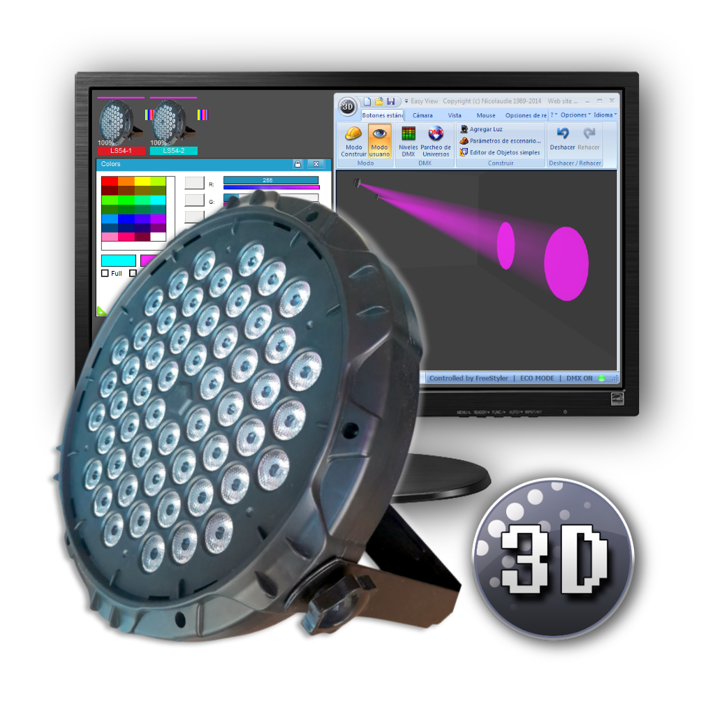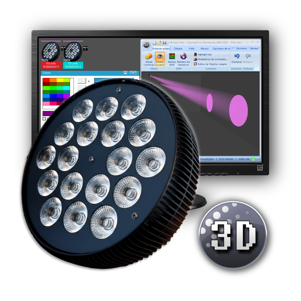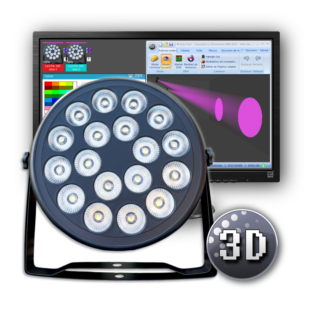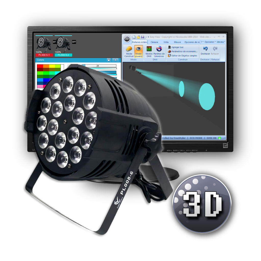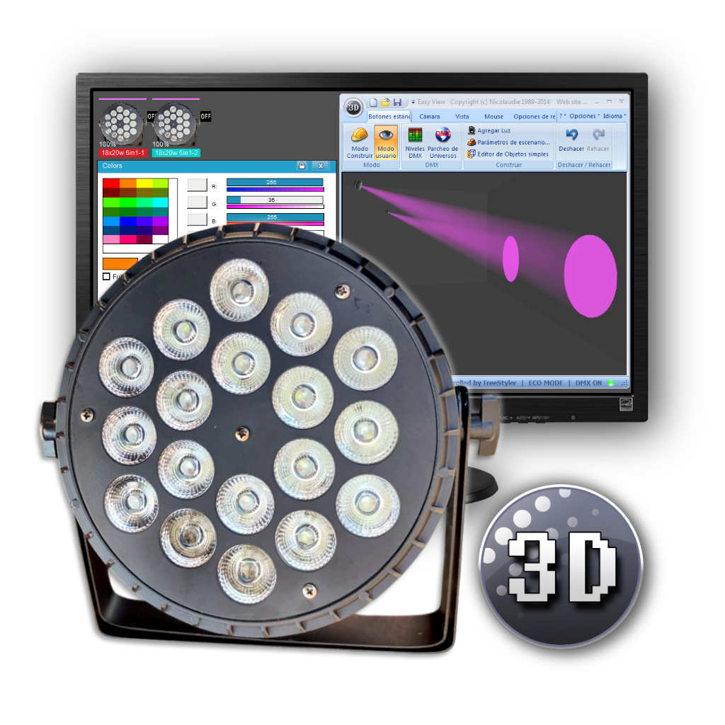 Librería de Magic 3D P/ Led Par 300 Dmx de GBR ( 6-10CH 18 leds RGBW con Aro Led )