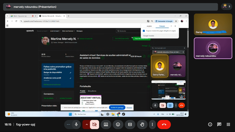 Dans cette formation, certaines sessions se déroulent en direct sur Google Meet afin de vous accompagner pas à pas dans votre lancement en freelance.