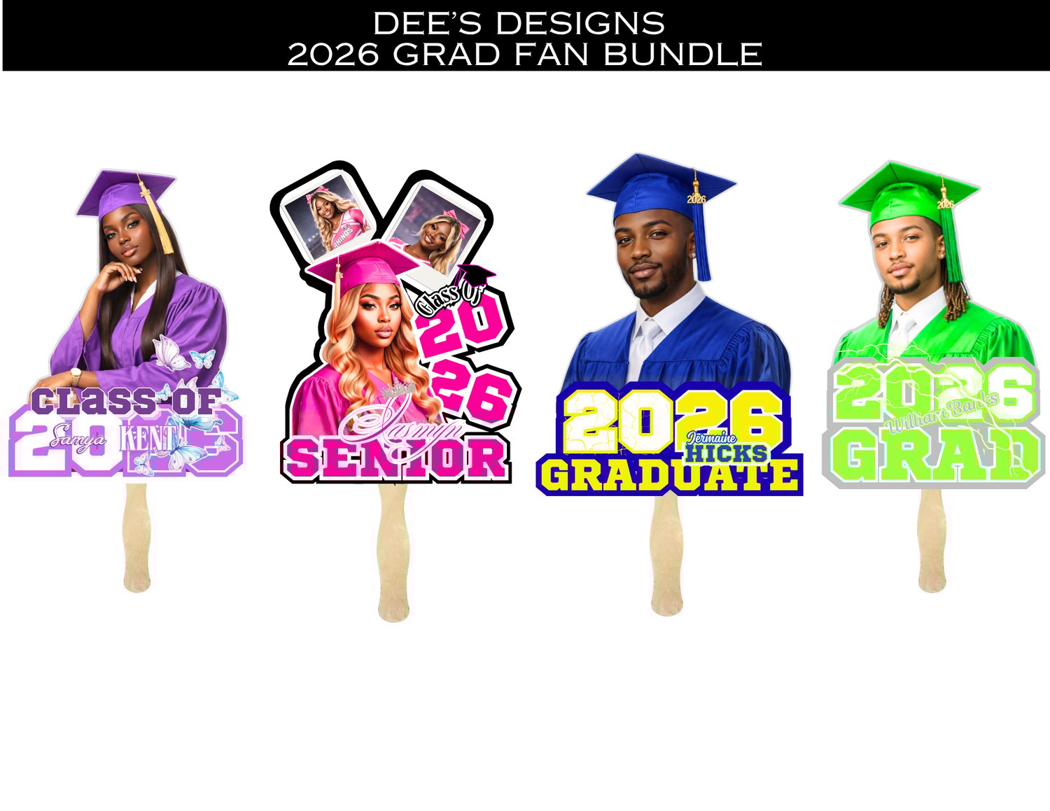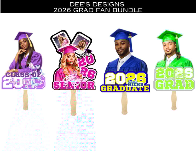 Make graduation day unforgettable with this bold and eye-catching 2026 Grad Fan Bundle! Designed to celebrate your graduate in style, this bundle includes 4 unique fan designs that are perfect for showing love, pride, and personality at ceremonies, parties, and photoshoots.