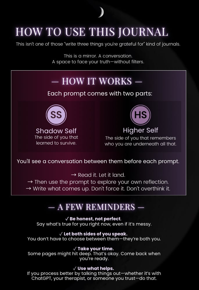 The prompts that helped me face my shadow, release what wasn't mine, and find peace in the mess.