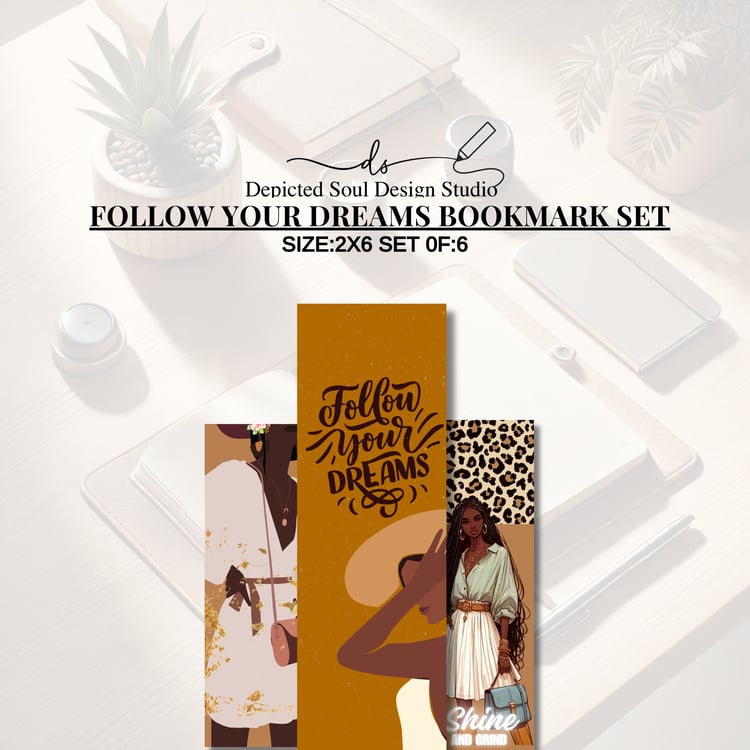This Bookmark set of 6 features beautifully designed bookmarks with the inspiring message "Follow your dreams". Each bookmark is laminated for durability and longevity.