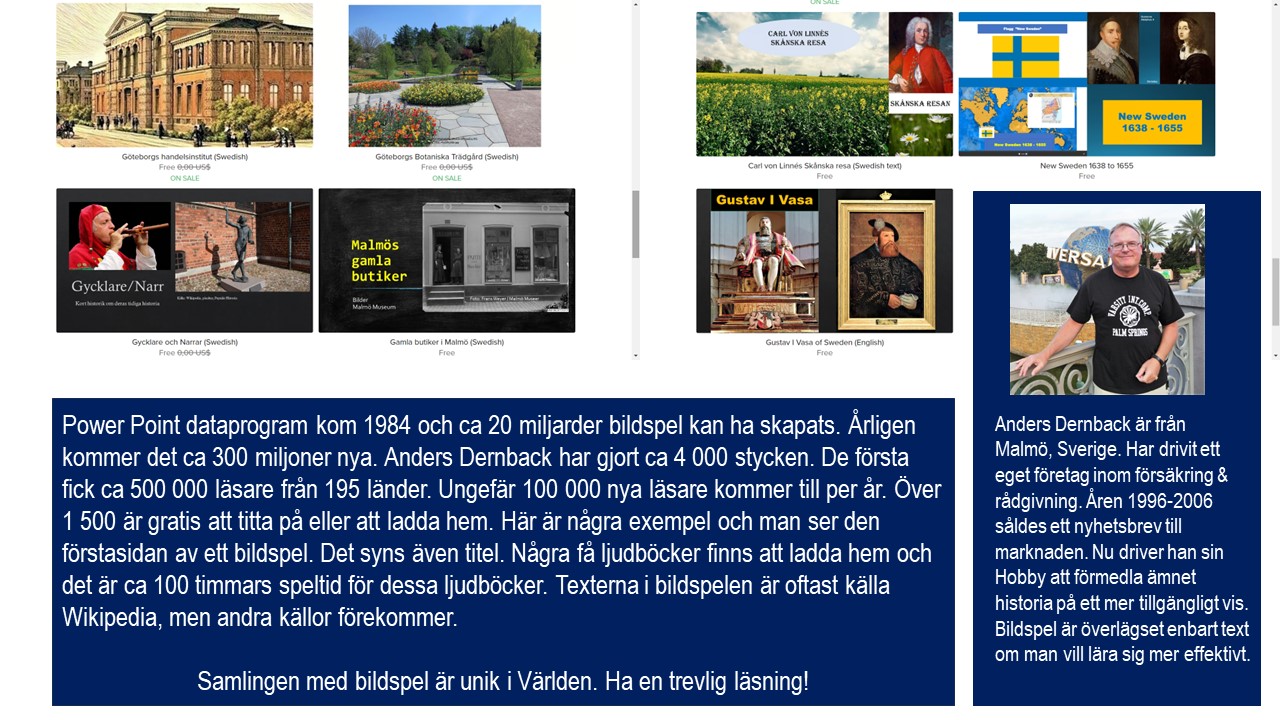 Läser men listan med titlar och gillar ett bildspel då skriver man in titeln i sökrutan och då hittar man direkt det man söker. På 60 sekunder sekunder har man sedan en PDF på väg till sin epostlåda. Enkelt helt enkelt. ca 58 % av bildspelen är kostnadsfria och finns att söka i en egen lista. Ha en trevlig läsning!
