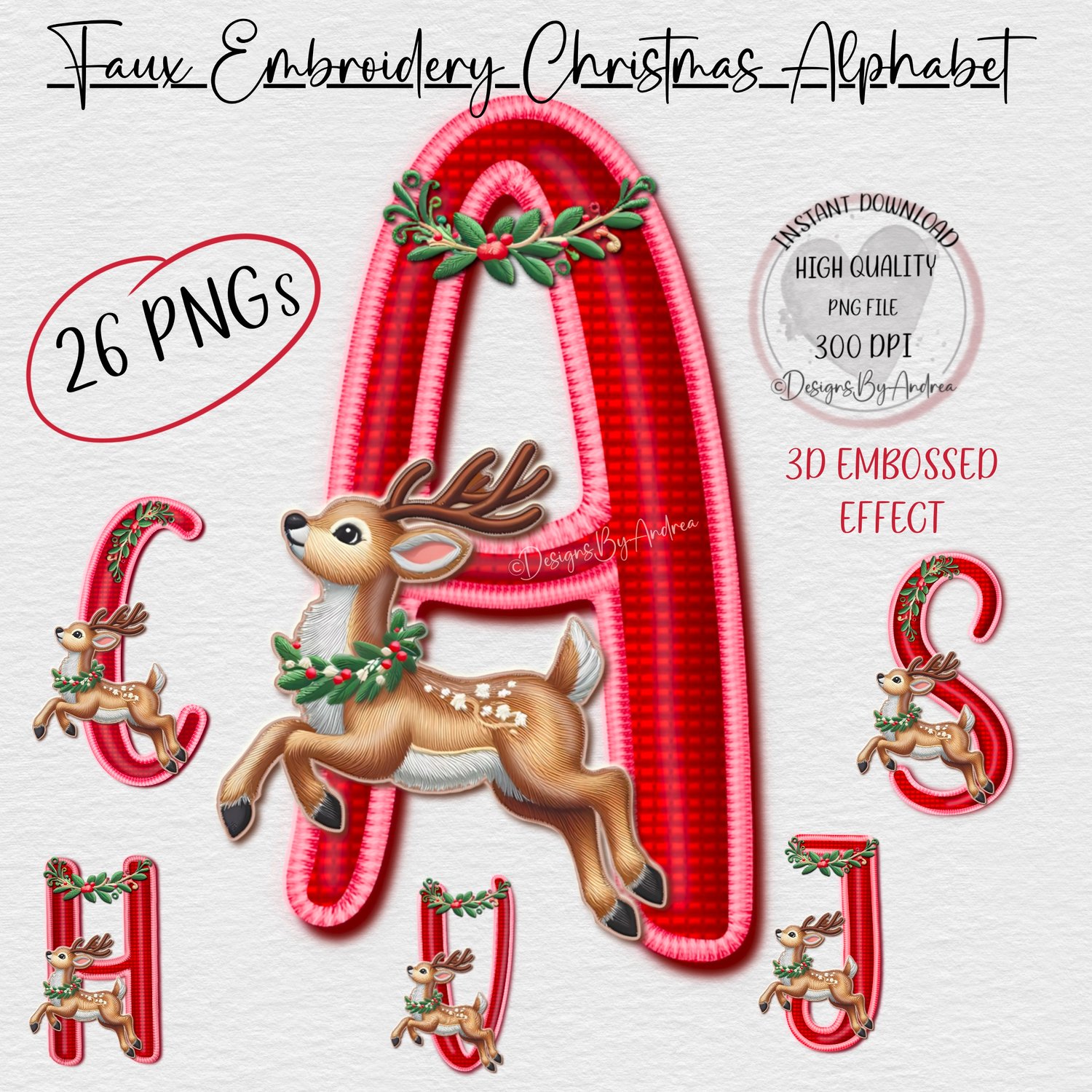 Christmas Alphabet PNG: Faux Embroidery Reindeer Letters (Digital Download)