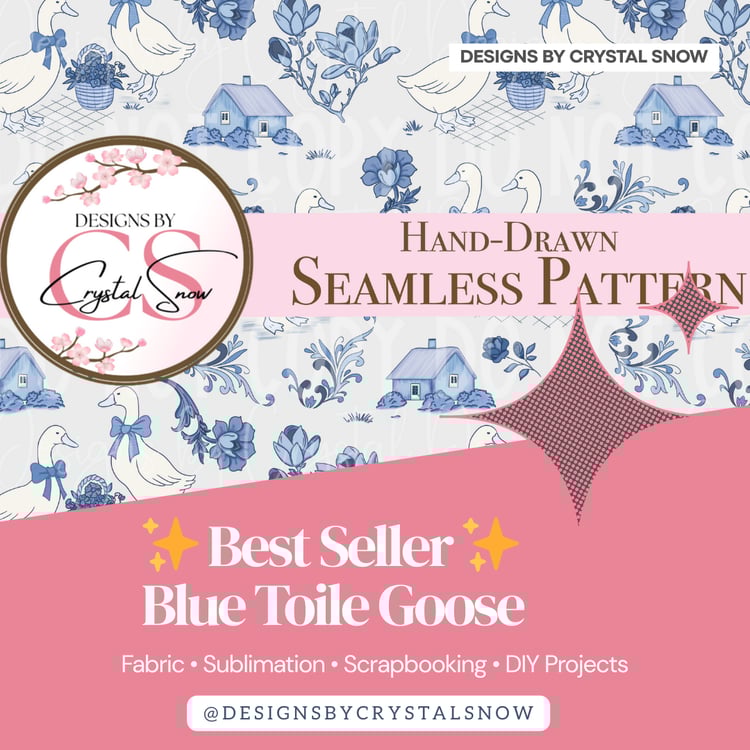 Another standout this year was my Blue Toile Goose seamless pattern, which found its way into so many creative projects. Seeing customers use that pattern in their own designs, crafts, and products has been one of the most rewarding parts of this journey.