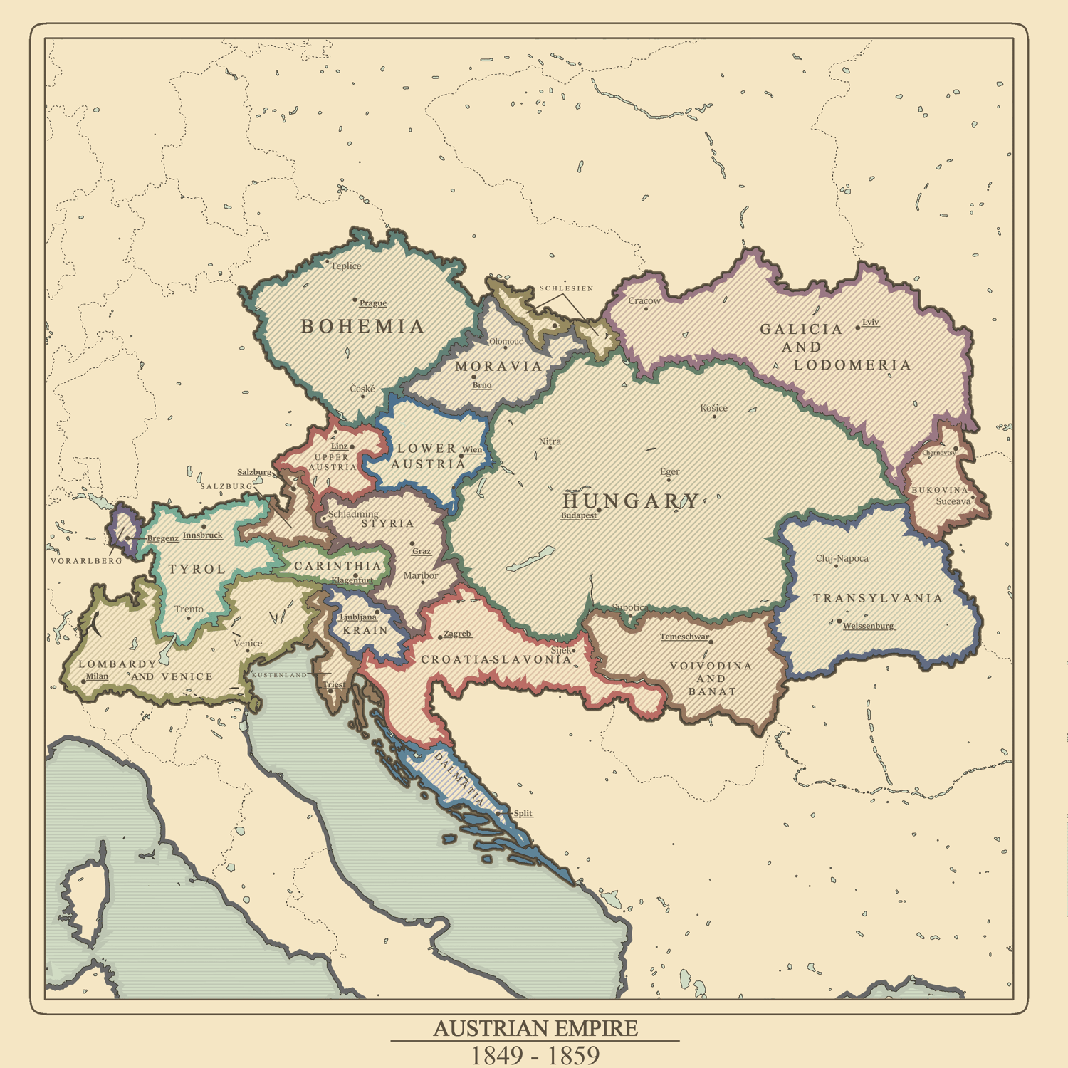 The Austrian Empire was a federation of several principalities, duchies and kingdoms under the leadership of the Habsburg emperor