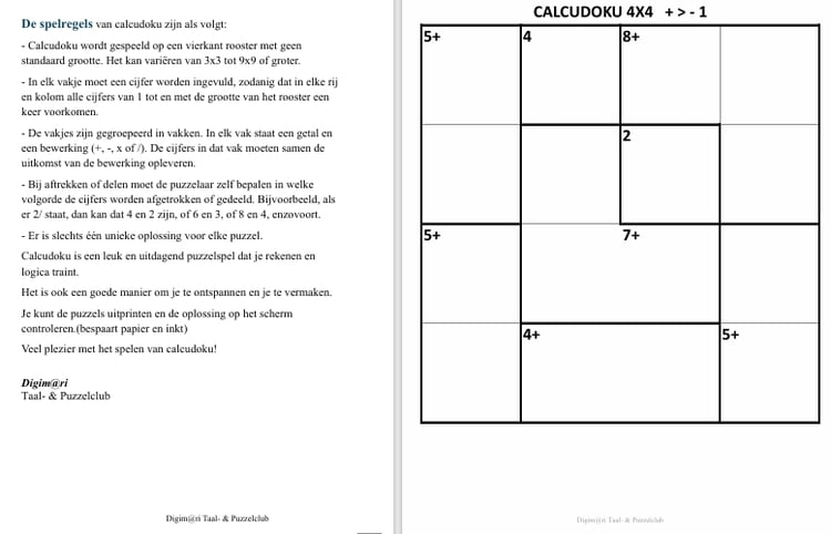 Calcudoku EXTRA GROOT 4x4