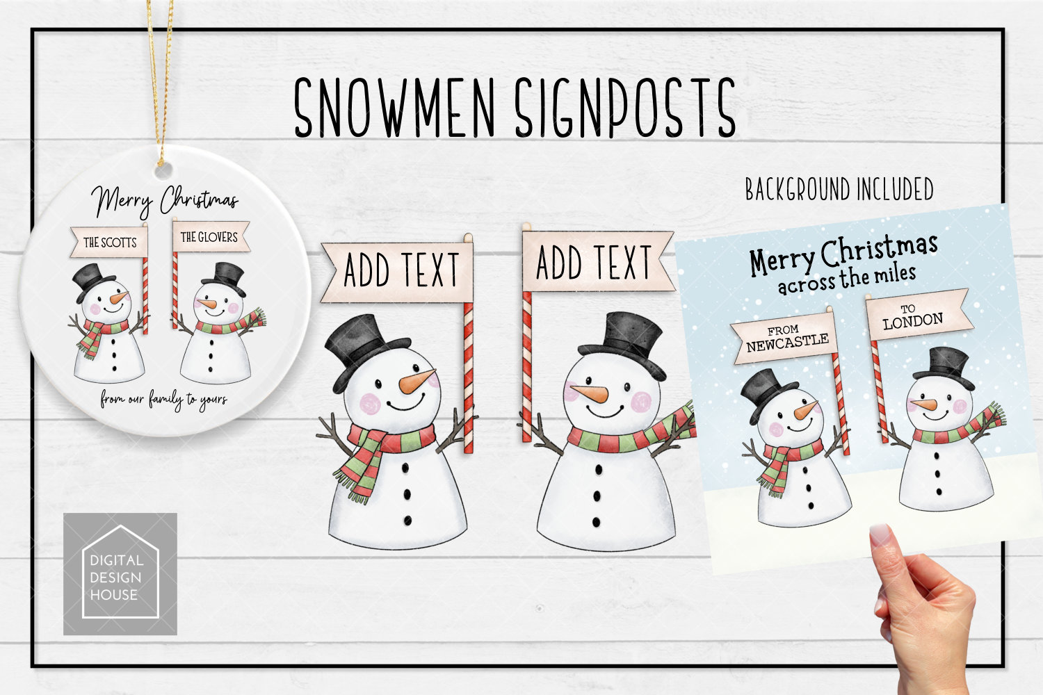 🎄 Snowmen Signposts Clipart Set – Editable Christmas Snowman PNGs with Customisable Signs + Backgrounds 🎄