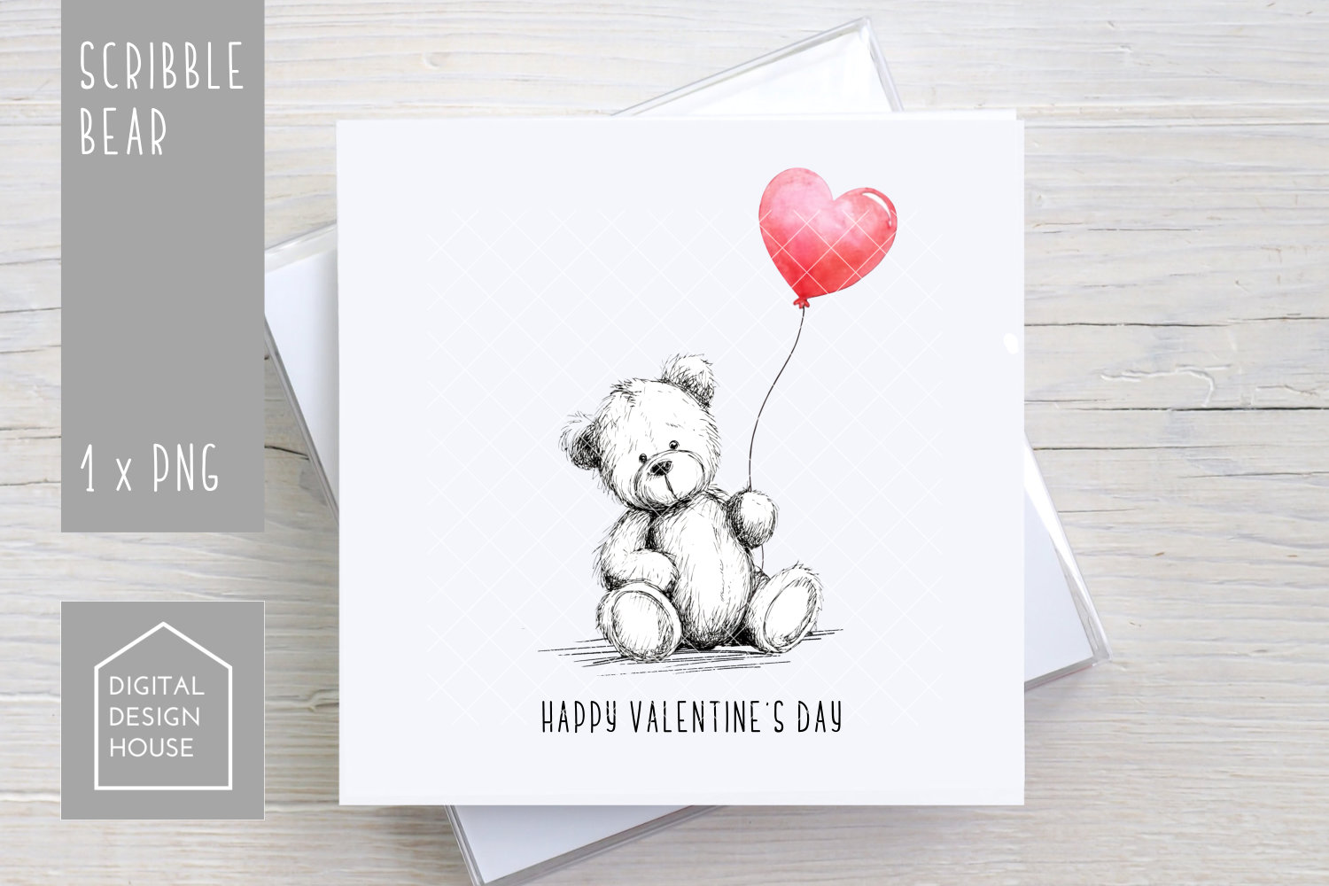 🐻 Scribble Bear PNG | Cute Teddy with Heart Balloon | Valentine Bear Clipart | Baby & Love Design | Digital Download