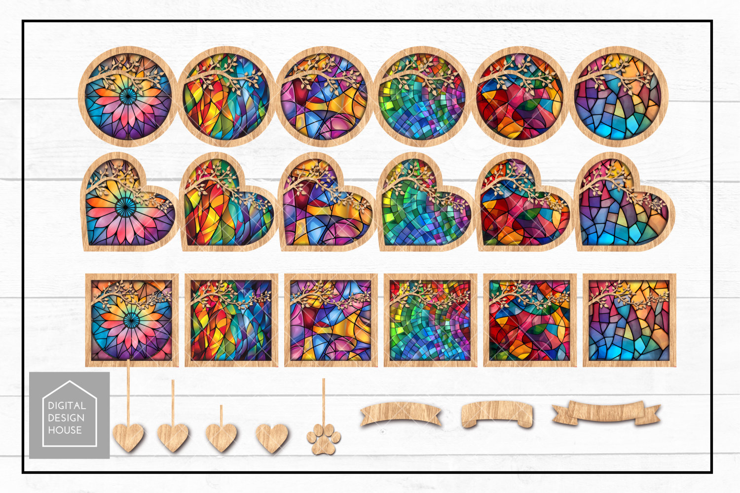 Stained Glass Family Branch Set Mix & Match create your own Design