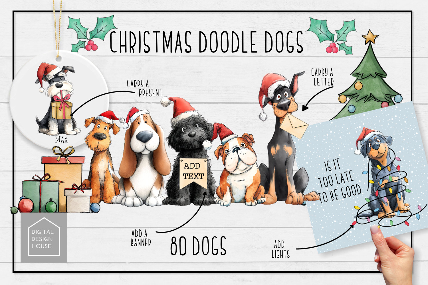 CHRISTMAS DOODLE DOGS - A collection of 80 Dogs wearing Santa Hats PNG