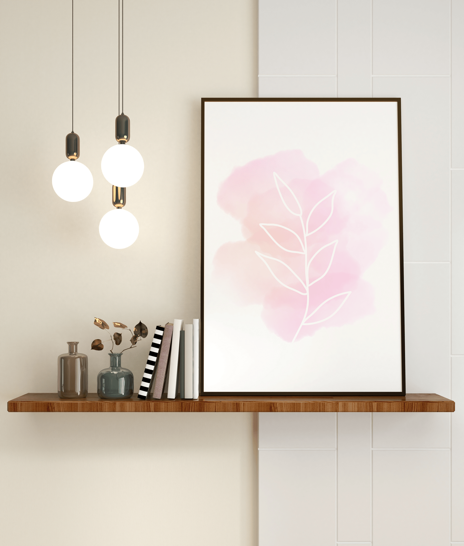 Pink Watercolor Leaf Print Wall Art, Printable Wall Art, Instant Digital Download, Printable Quotes, Home Decor, Downloadable.