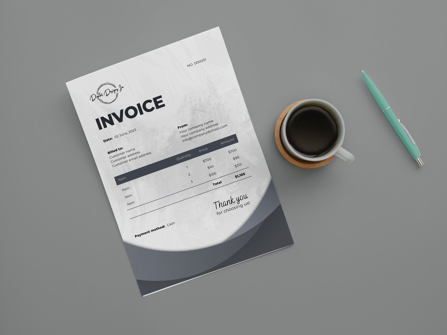 8.2" x 11.7" BUSINESS INVOICE TEMPLATE GREY THEMED, DOWNLOADABLE, EDITABLE, PRINTABLE, EDIT IN CANVA