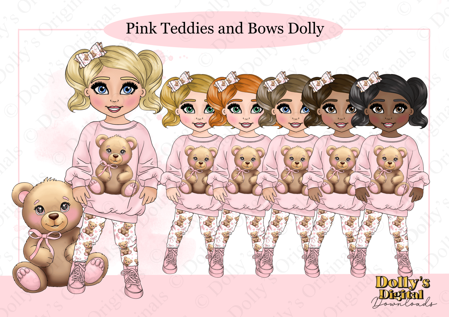 Pink Teddies and Bows Toddler Dolly