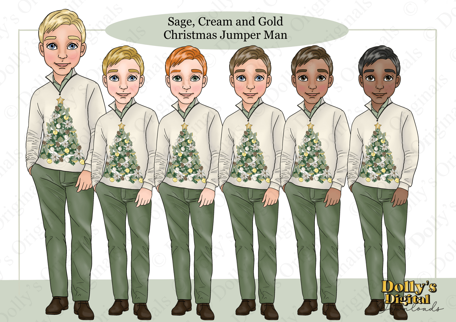 Sage, Cream and Gold Christmas Tree Jumper Man