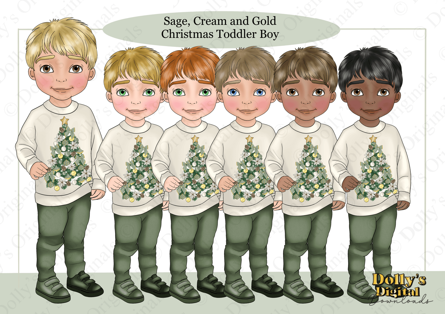 Sage, Cream and Gold Christmas Tree Jumper Toddler Boy