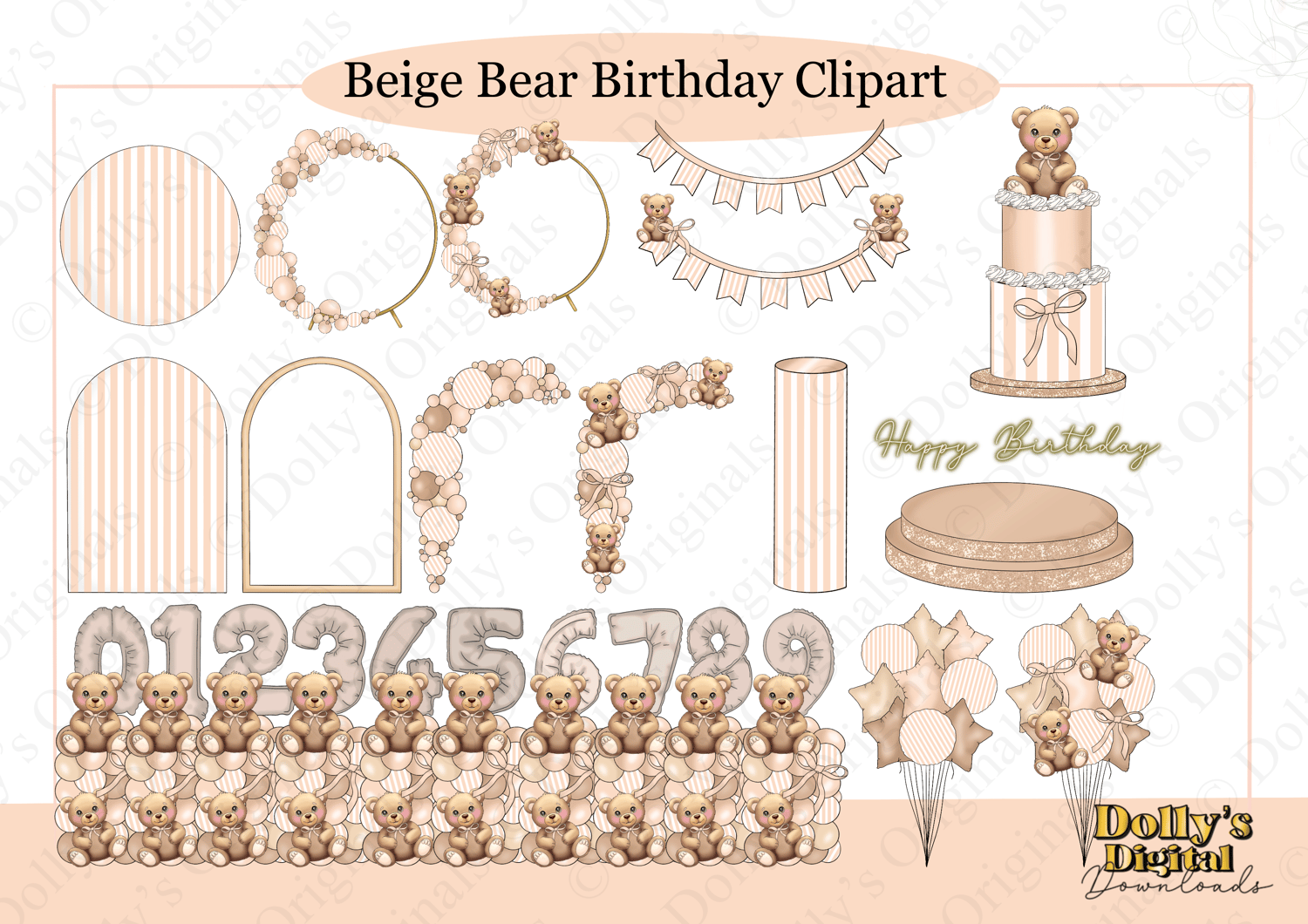Beige Bear Birthday Clipart