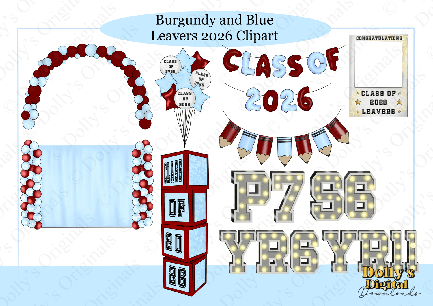 Burgundy and Blue Leavers 2026 Clipart