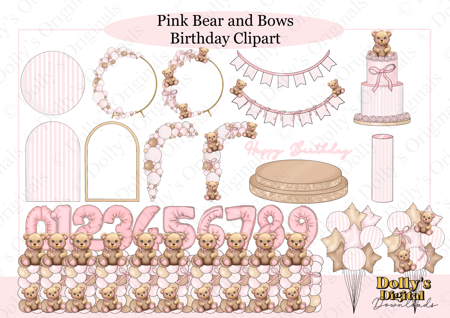 Pink Bear and Bows Birthday Clipart