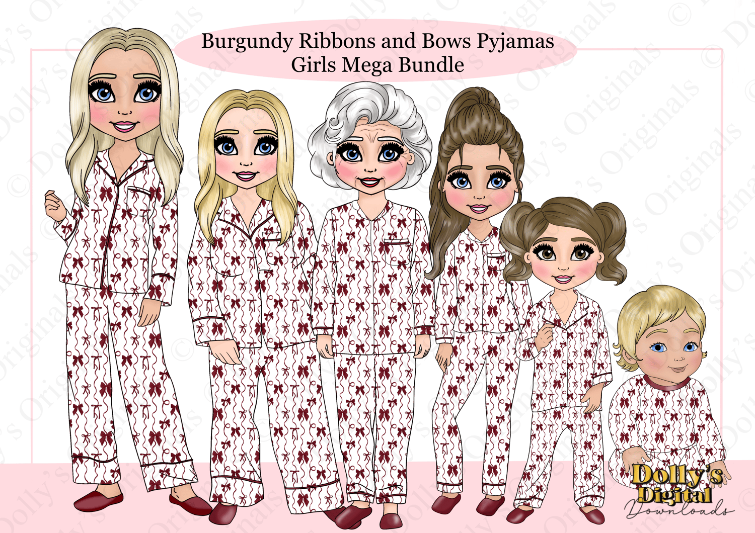 Burgundy Ribbons and Bows Pyjamas Girls Mega Bundle