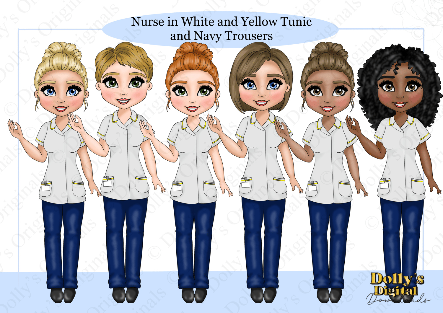 Nurse in White and Yellow Tunic with Navy Trousers