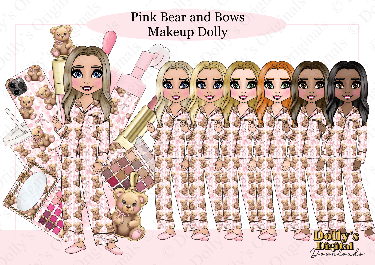 Pink Bear and Bows Makeup Dolly