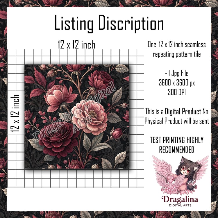 Vintage Burgundy & Teal Floral Seamless Pattern