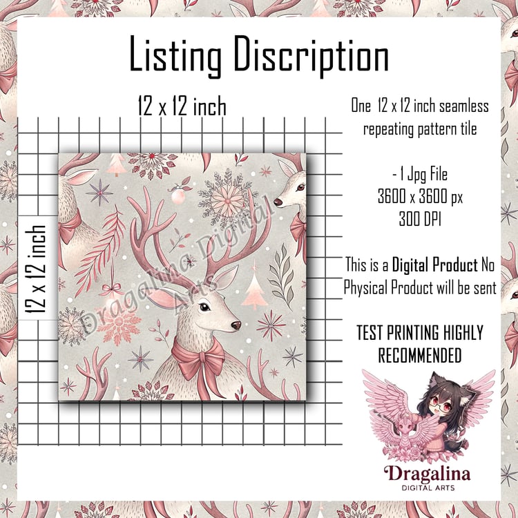 Gilded Winter Stag Seamless Pattern