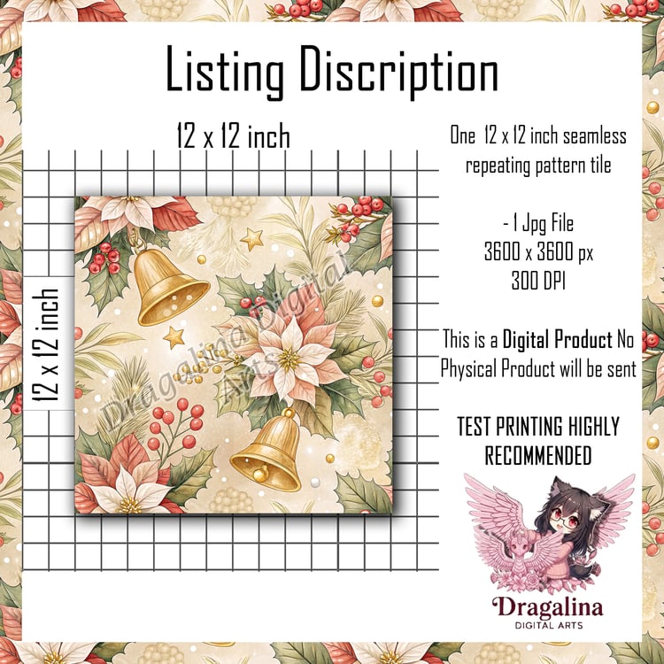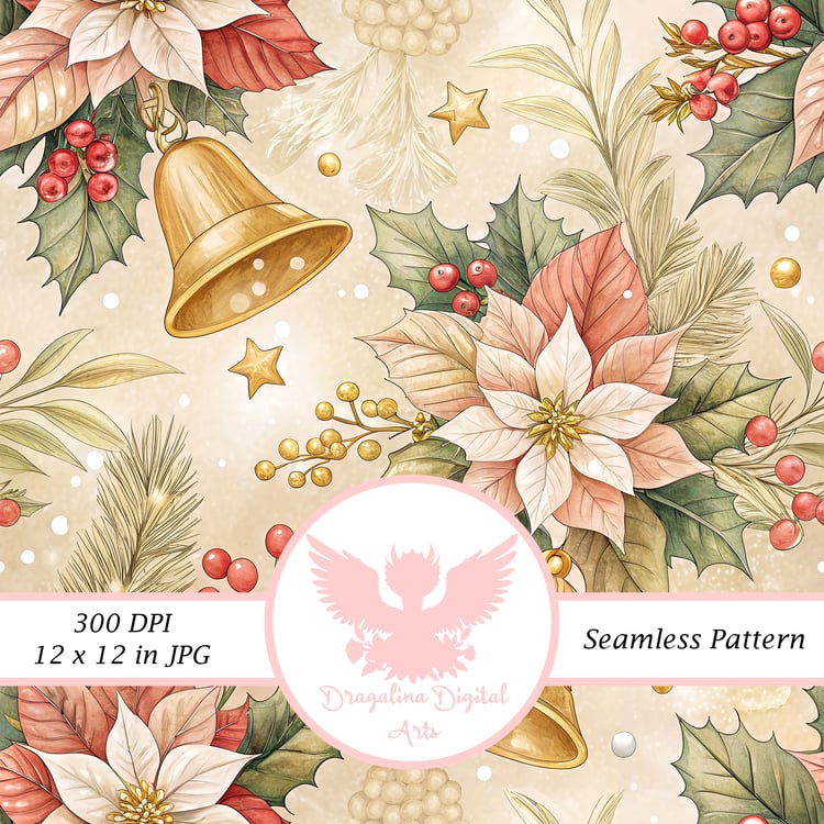 Vintage Bells & Holly Seamless Pattern