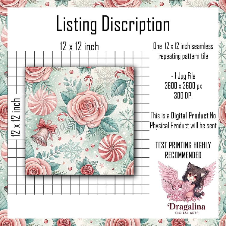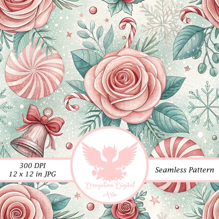 Rose & Peppermint Swirl Seamless Pattern