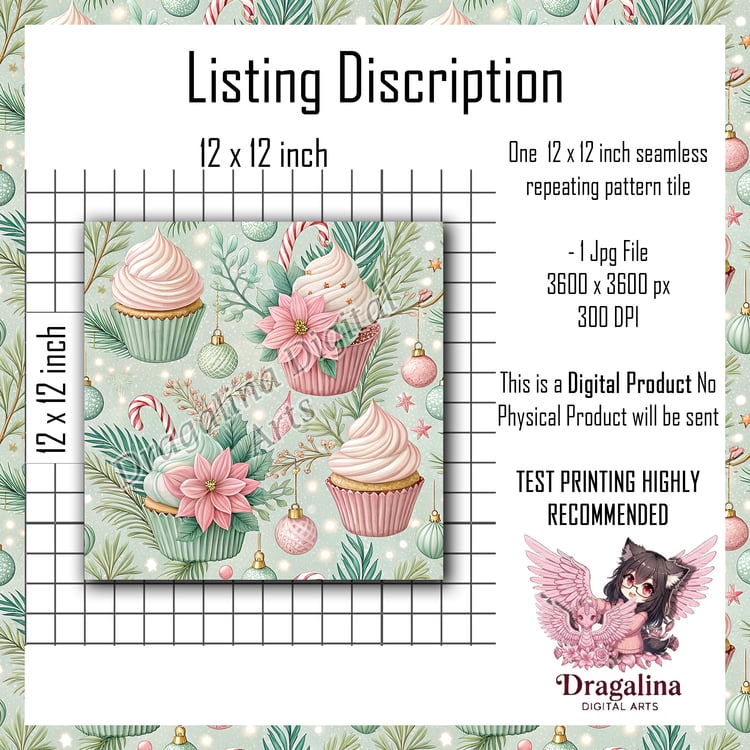 Vintage Holly & Candy Cane Seamless Pattern