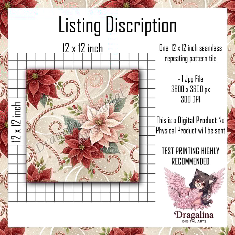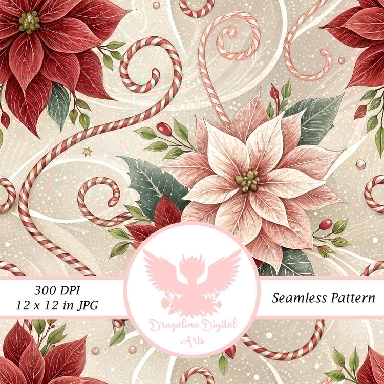 Cranberry Poinsettia Seamless Pattern