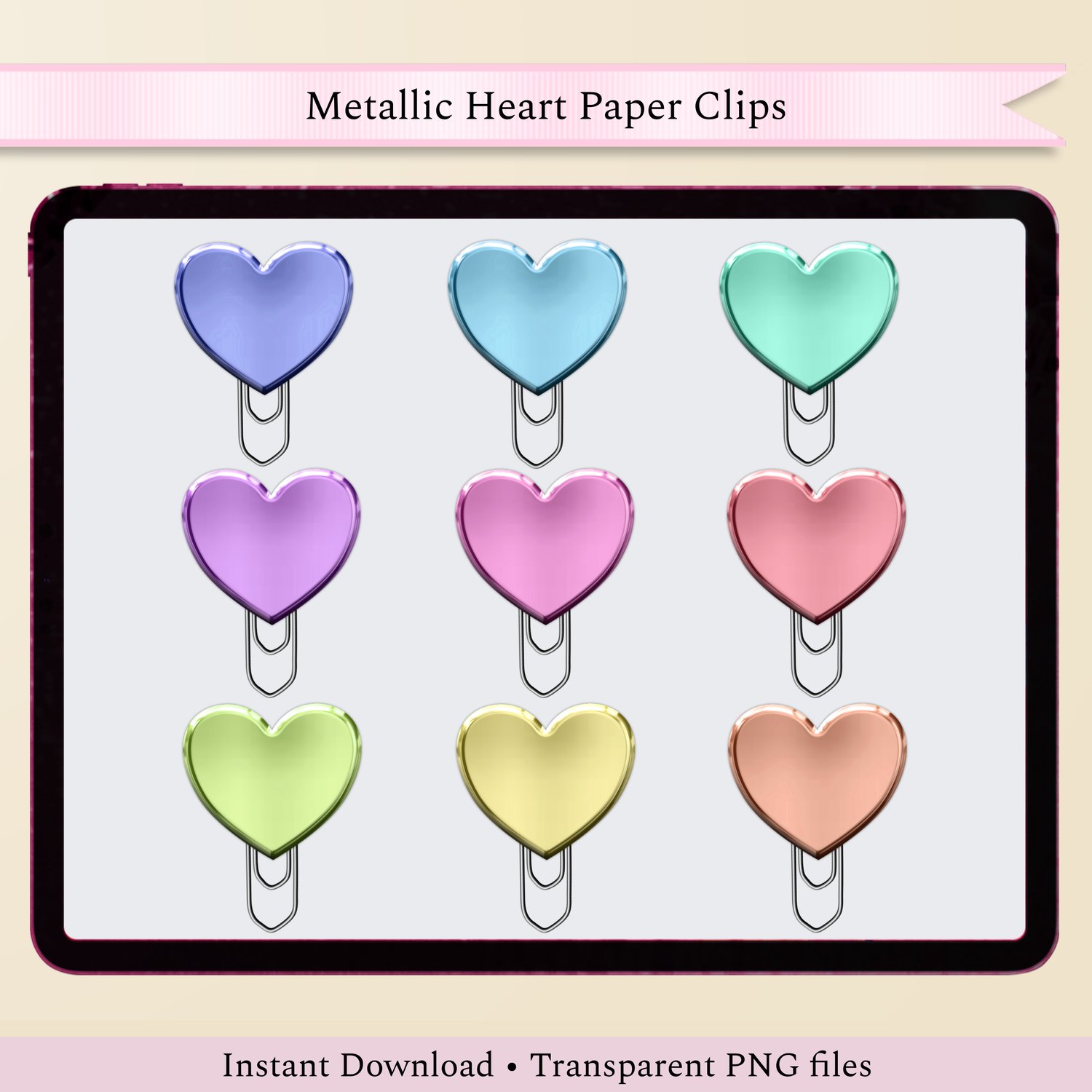 Metallic Hearts Paper Clips