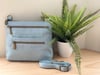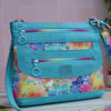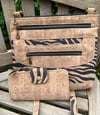 The "Andora" bag is a medium-sized cross-body bag featuring 3 exterior zipper pockets and 1 exterior slip pocket. Safely store your passport or travel documents for easy access. Keys or a phone are quickly accessible. It is meant to be soft and unstructured. You will learn a pocket technique that is unique, intriguing, and satisfying. The interior design boasts a zipper pocket with overlay and a divided slip pocket. Exterior fabric A requires raw-edged material like vinyl/cork/leather. The rest of the body of the bag can be made from canvas, waxed canvas, stabilized cottons, or use cork/vinyl/leather for the entire bag. The choices are endless.