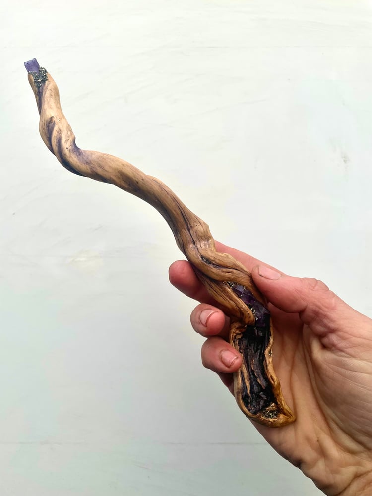 I work with my intuition and natural instincts to reveal and uncover the magic that lies within the amazing things I find, and I work in fine detail so it looks like the crystals could have grown on them. I put care into choosing where my crystals come from and wood and other things almost always come from ancient woodland or from near sacred sites. I have been told so many times that it looks like everything I make could have just come out of a fantasy or faerie story realm.