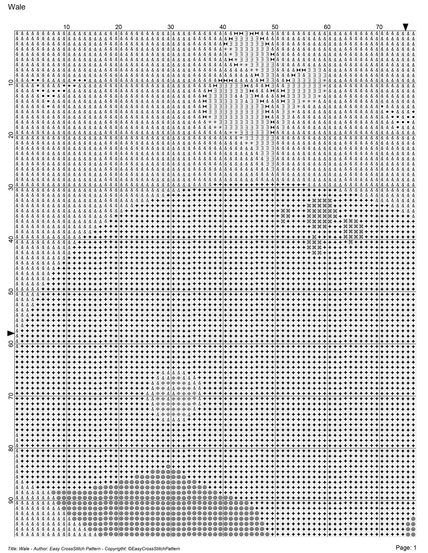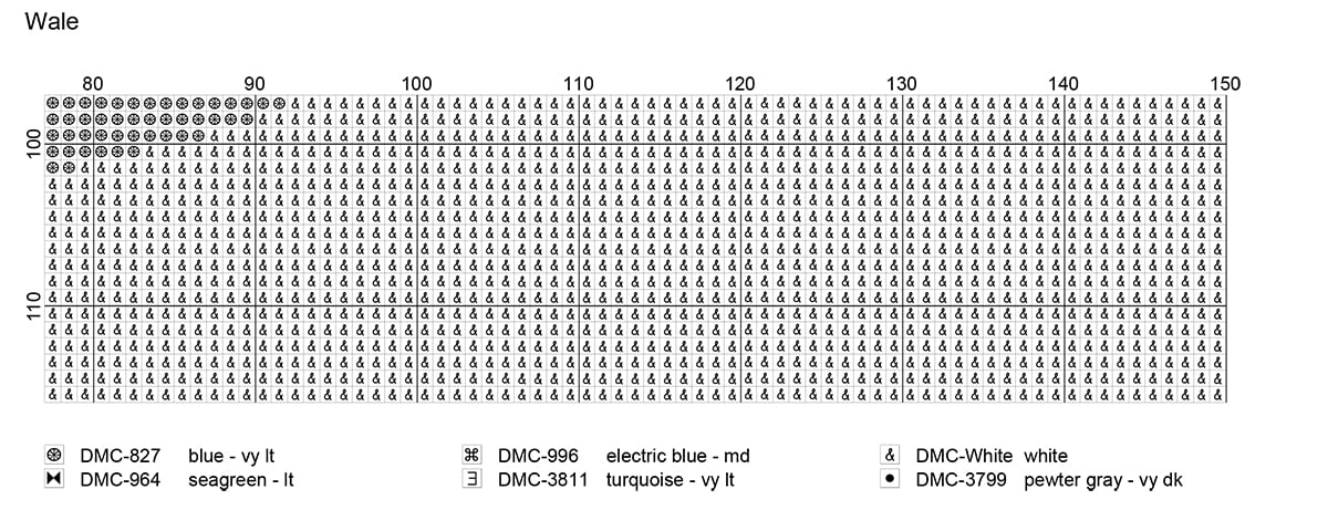 Each colored square or symbol in the chart represents a cross stitch from the original design.