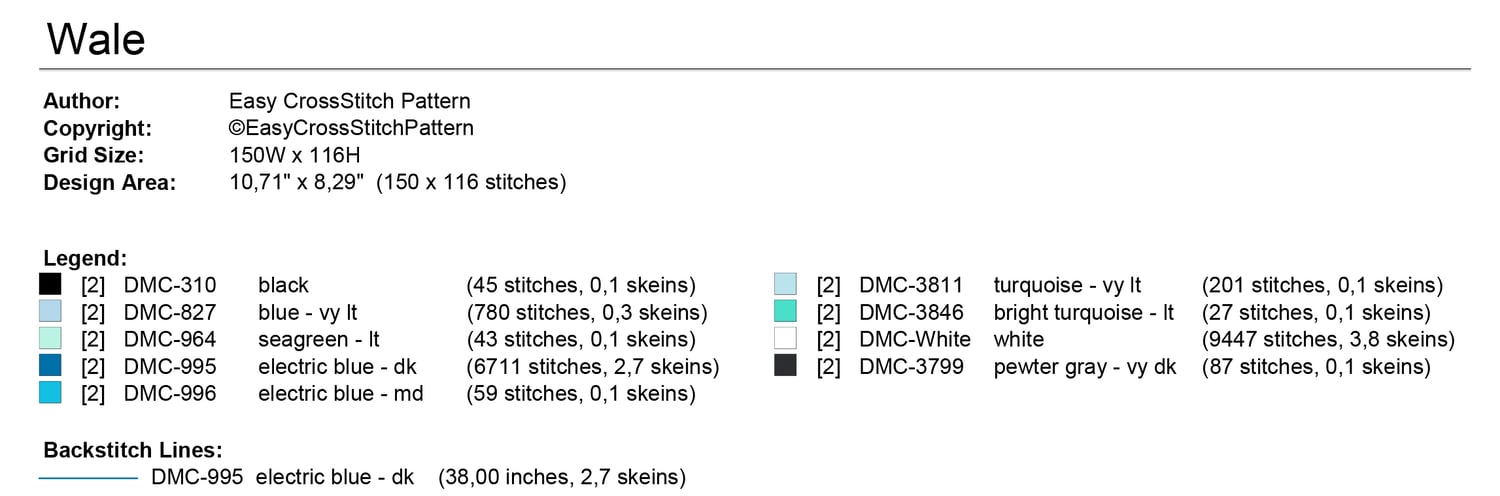 The colors to be used are listed at the beginning of the document.